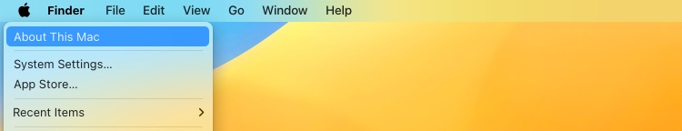 To find your Mac specs, click the Apple menu () in the upper-left corner of the menu bar, then choose About This Mac.